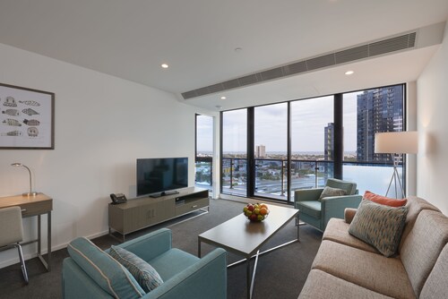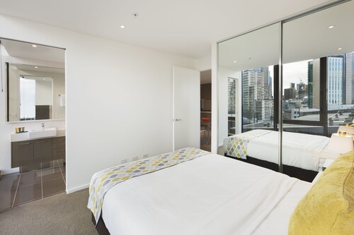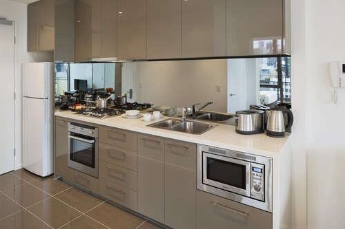 メルボルン セントラル ビジネス ディストリクトに位置するこのアパートメントは、サウスバンク プロムナードおよびクラウンカジノ & 娯楽施設から徒歩 10 分圏内です。コリンズ ストリートおよびフェデレーション スクエアも 2 km 圏内です。フリンダース ストリート駅まで徒歩 13 分、フラッグスタッフ駅まで徒歩 22 分です。 このアパートメントには、屋内プール、フィットネスセンター、および面の屋外テニスコートがあります。共用エリアでの WiFiは無料です。 その他の設備には、セルフパーキング (有料)、コンシェルジュ サービス、およびドライクリーニングがあります。 各アパートメントでは、冷蔵庫とオーブン、コンロ、電子レンジが備わったキッチンをご利用いただけます。便利な洗濯機 / 乾燥機とリビング ルームをご利用いただけるほか、デジタル放送付き液晶テレビ、DVD プレーヤーでエンターテインメントをお楽しみいただけます。週に 1 回ハウスキーピングが行われます。