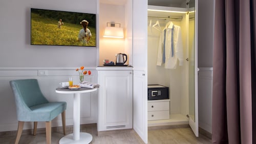 ローマ シティセンターに位置するこのホテルは、サンタ マリア マッジョーレ大聖堂およびローマ オペラ座から徒歩 5 分圏内です。クイリナーレおよび ネロの黄金宮殿も 15 分圏内です。ファリーニ路面電車停留所とナポレオーネIII トラム停留所が徒歩 5 分圏内にあります。 この禁煙のホテルには、バー / ラウンジ、ドライクリーニング、および24 時間対応フロントデスクがあります。朝食ビュッフェ (無料)、共用エリアでの WiFi (無料)、およびマネジャー主催のレセプション (無料)もご利用いただけます。 その他に、敷地内にはエクスプレス チェックアウト、ツアー / チケット案内、およびセーフティボックス (フロントデスク)があります。 客室清掃はリクエストにより行われます。