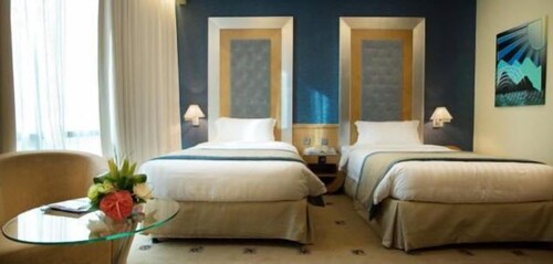 テコムに位置するこのホテルは、ジュベル アリ競馬場から 1.1 km、シェイク ザイード ロードから 2.9 km です。ドバイ大学およびエミレーツ ゴルフ クラブも 3 km 圏内です。地下鉄 ドバイ インターネット シティ駅まで徒歩わずか 8 分です。 レストラン、屋内プール、および屋外プールがあるホテルです。その他の設備には、ナイトクラブ、フィットネスクラブ (スタッフ常駐)、およびバー / ラウンジがあります。 防音仕様の客室では毎日のハウスキーピングをご利用いただけます。