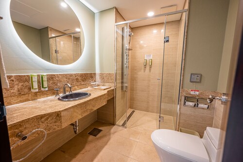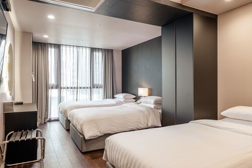 海雲台に位置するこのホテルは、BEXCO 釜山国際展示場および新世界セントムシティから徒歩 5 分圏内です。広安里ビーチおよび海雲台ビーチも 5 km 圏内です。地下鉄 センタムシティ駅まで徒歩わずか 4 分、ベクスコ駅まで徒歩 8 分です。 禁煙のこのホテルには、2 か所のレストラン、コーヒーショップ / カフェ、および共用エリアでのコーヒー / ティーサービスがあります。共用エリアでの WiFiは無料です。 その他の設備には、共用エリアの電子レンジ、コンシェルジュ サービス、およびランドリー設備があります。