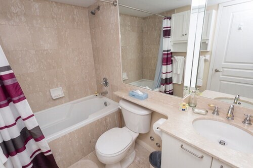 ダウンタウン トロントに位置するこのアパートメントは、ザ パスおよびクイーン ストリート ウエストから歩いてすぐです。CF トロント イートン センターおよびメトロ トロント コンベンション センターも 15 分圏内です。 クィーン ストリート ウェスト アット ユニバーシティ アベニュー停留所と地下鉄 オズグッド駅が徒歩 2 分圏内にあります。 フィットネスセンター、ルーフトップテラス、およびセルフパーキング (有料)がある禁煙のアパートメントです。その他に、敷地内にはコンシェルジュ サービス、ランドリー設備、およびゲームコーナーがあります。 各アパートメントでは、深めの浴槽のほかに、WiFi (無料)、キッチンもご利用いただけます。便利な洗濯機 / 乾燥機と応接スペースをご利用いただけるほか、ケーブル放送付きテレビ、DVD プレーヤーでエンターテインメントをお楽しみいただけます。週に 1 回客室清掃が行われます。