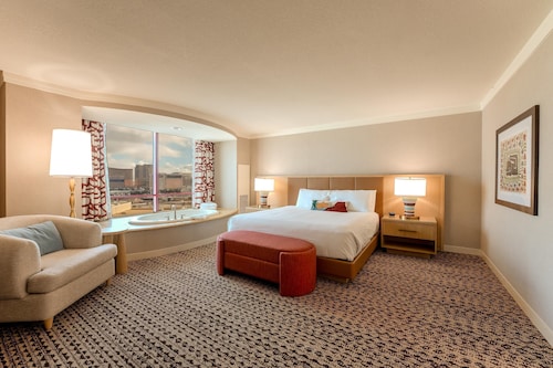空港の近くに位置するこのリゾートは、ベラージオの噴水、ファッション ショー モール、T- モバイル アリーナから 3 km 圏内です。スフィアおよびラスベガスフェスティバルグラウンズも 5 km 圏内です。フラミンゴ - シーザーズ パレス モノレール駅まで徒歩 23 分、バリーズ アンド パリス ラスベガス モノレール駅まで徒歩 26 分です。 16 か所のレストラン、カジノ、および2 か所のプールサイドバーがあるリゾートです。共用エリアでの WiFi (無料)および バレーパーキング (無料)もご利用いただけます。その他の設備には、6 か所のバー / ラウンジ、フィットネスセンター、およびスナックバー / デリがあります。