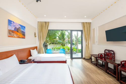 ビーチの近くにあるこのスパ付きホテルは、スンフンパゴダおよびフーコック ナイト マーケットから 2 km 圏内です。ディン バー トゥイ ロン タン マウおよびディンカウビーチも 2 km 圏内です。 2 か所のレストラン、フルサービス スパ、および屋外プールがあるホテルです。共用エリアでの WiFi (無料)および セルフパーキング (無料)もご利用いただけます。その他に、敷地内にはスパサービス、子供用プール、およびコンシェルジュ サービスがあります。