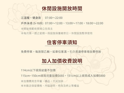 高雄市中心に位置するこのホテルは、愛河および駁二芸術特区から徒歩 15 分圏内です。六合夜市まで 2.3 km です。 軽軌真愛碼頭駅まで徒歩わずか 5 分、地下鉄 塩埕埔駅まで徒歩 6 分です。 レストランのほか、この禁煙のホテルにはフィットネスセンターおよびサウナがあります。共用エリアでの WiFi (無料)および セルフパーキング (無料)もご利用いただけます。その他の設備には、カンファレンス センター、コーヒーショップ / カフェ、および季節限定屋外プールがあります。 客室清掃はリクエストにより行われます。