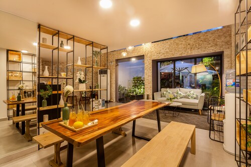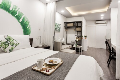 3 区に位置するこのアパートスタイルホテルは、タオダン公園、ブイ ビエン ウォーキング ストリート、ファングーラオ通りから徒歩 15 分圏内です。ベンタイン市場および戦争証跡博物館も 2 km 圏内です。サイゴン駅まで徒歩わずか 19 分です。 このアパートスタイルホテルには、スナックバー / デリ、ルーフトップテラス、およびドライクリーニングがあります。共用エリアでの WiFi (無料)および セルフパーキング (無料)もご利用いただけます。その他に、敷地内には庭園、セーフティボックス (フロントデスク)、およびレセプション ホールがあります。 各客室では、ケーブル放送付き薄型テレビに加えて、冷蔵庫とコンロ、電子レンジが備わった簡易キッチンをご利用いただけます。そのほか、WiFi (無料)、ルームサービス、電気ポットもご利用いただけます。客室清掃が行われる日が限定されています。