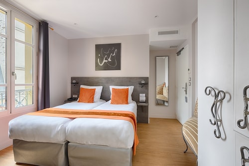 7 区に位置するこのホテルは、エッフェル塔、グラン パレ (ギャラリー)、シャンゼリゼ通りから 2 km 圏内です。ルーブル美術館および凱旋門も 3 km 圏内です。地下鉄 エコール ミリテール駅まで徒歩わずか 4 分、地下鉄 ラ トゥール モウブルグ駅まで徒歩 6 分です。 バー / ラウンジのほか、この禁煙のホテルにはコンシェルジュ サービスおよびドライクリーニングがあります。共用エリアでの WiFiは無料です。 その他に、敷地内にはランドリー設備、24 時間対応フロントデスク、および図書室があります。