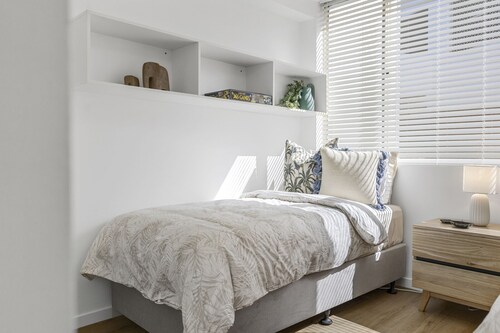 ビーチに直接アクセスできる、カランビンのこのアパートメントは、ショッピング地区にあり、カランビンアリービーチおよびパーム ビーチ ピラート トレジャー アイランド プレイグラウンドから徒歩 10 分圏内です。カランビン ビーチおよび カランビン自然動物公園も 15 分圏内です。 ビーチにあるこのアパートメントでは、子供用プールやバーベキューグリルなどの便利な設備やサービスをご利用いただけます。 各アパートメントでは、冷蔵庫とオーブン、電子レンジ、食器洗い機が備わったキッチンをご利用いただけます。便利な2 室のバスルーム、洗濯機のほか、WiFi、薄型テレビもご利用いただけます。客室清掃は行われません。