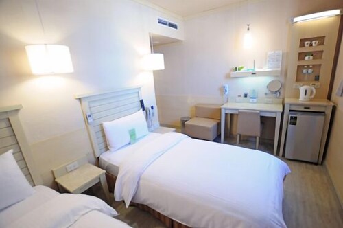 高雄市中心に位置するこのホテルは、Star Shrimp Farmおよび六合夜市から徒歩 15 分圏内です。愛河およびセントラル パークも 3 km 圏内です。高雄駅まで徒歩 10 分、地下鉄美麗島駅まで徒歩 11 分です。 この禁煙のホテルには、レストラン、共用エリアでのコーヒー / ティーサービス、およびビジネスセンターがあります。 朝食ビュッフェ (無料)、共用エリアでの WiFi (無料)、およびマネジャー主催のレセプション (無料)もご利用いただけます。 その他に、敷地内にはランドリー設備、24 時間対応フロントデスク、および新聞 (無料)があります。 全 118 室の客室には、快適な滞在を約束するバスローブおよびスリッパのほか、WiFi (無料)ならびにLED テレビ (ケーブル放送付き) が備わっています。DVD プレーヤー、羽毛の掛け布団、およびボトルウォーター (無料)をご利用いただけます。
