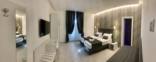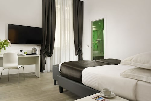 ローマ シティセンターに位置するこのホテルは、ナツィオナーレ通り、ヴェネト通り、サンタ マリア マッジョーレ大聖堂から徒歩 10 分圏内です。トレヴィの泉およびスペイン階段も 2 km 圏内です。地下鉄レプッブリカ - テアトロ デッロペラ駅まで徒歩わずか 2 分、テルミニ トラム停留所まで徒歩 8 分です。 バー / ラウンジのほか、この禁煙のホテルにはスナックバー / デリおよびコーヒーショップ / カフェがあります。共用エリアでの WiFiは無料です。 その他の設備には、セルフパーキング (有料)、共用エリアでのコーヒー / ティーサービス、およびコンシェルジュ サービスがあります。