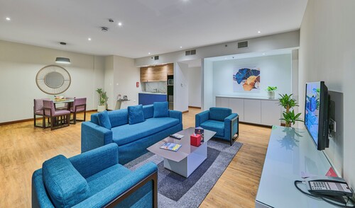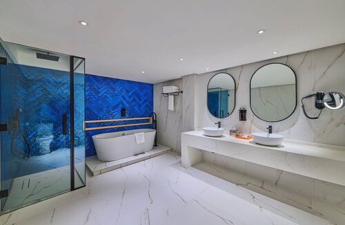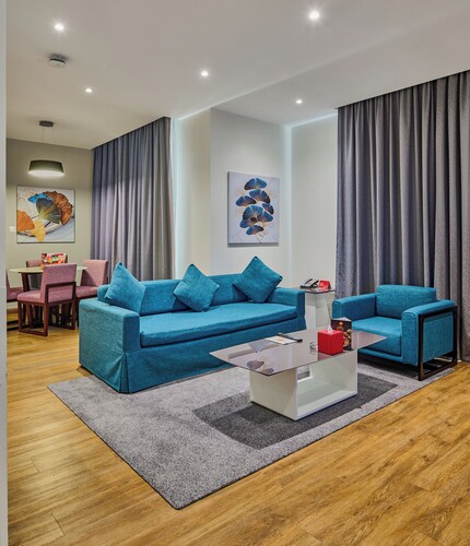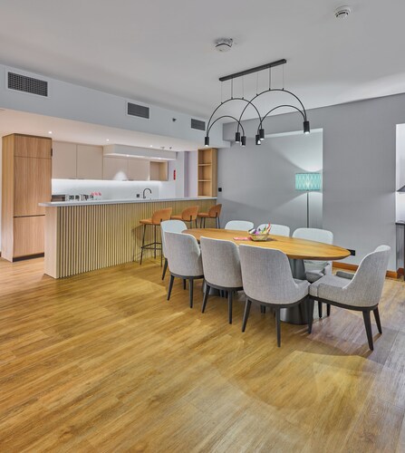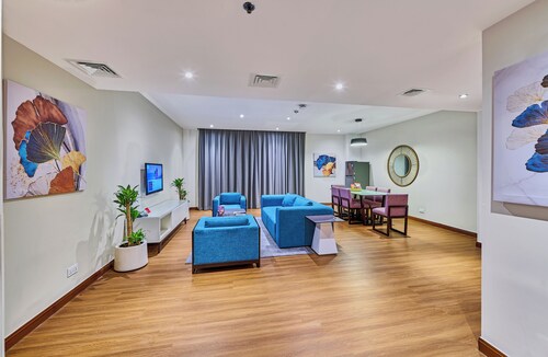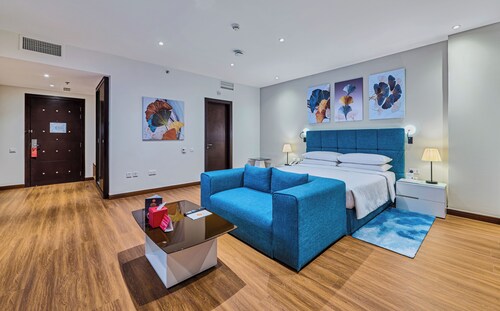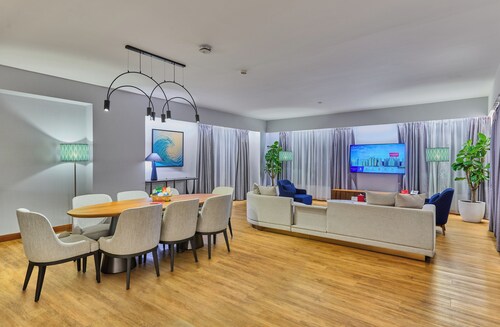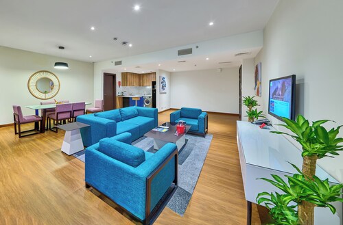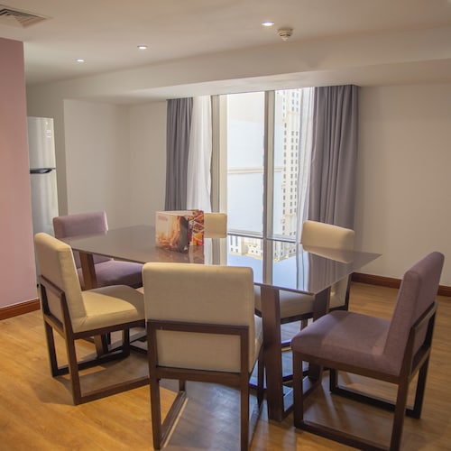 ビーチに直接アクセスできる、ドバイ マリーナのこのホテルは、市内中心部にあり、ザ ウォークおよびマリーナ ビーチから徒歩 5 分圏内です。イブン バトゥータ モール (ショッピング)およびドバイ マリーナ モールも 10 km 圏内です。ジュメイラビーチレジデンス2トラム駅まで徒歩 6 分、ジュメイラ・ビーチ・レジデンス 1 トラム停留所まで徒歩 14 分です。 ビーチ近くで日光浴をし、ラマダ ホテル アンド スイーツ、ウィンダム ドバイ JBRのフルサービス スパで一日リラックスした後は、ホテルにある 2 か所のレストランで食事をお楽しみください。 客室清掃はリクエストにより行われます。
