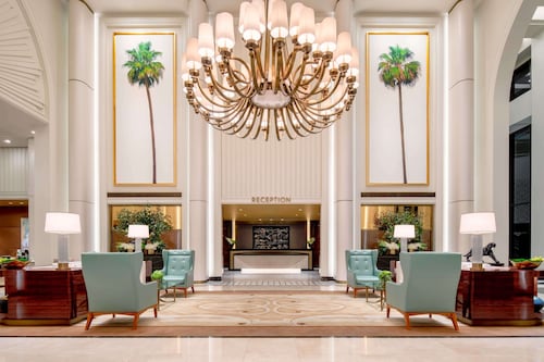 ビバリー ヒルズ中心部に位置するこの高級ホテルは、ウエストフィールド センチュリー シティおよびロデオドライブから 2 km 圏内です。カリフォルニア大学ロサンゼルス校およびロナルド レーガン UCLA メディカル センターも 5 km 圏内です。 この禁煙のホテルには、3 か所のレストラン、フルサービス スパ、および屋外プールがあります。 共用エリアでの WiFi (無料)および地域内シャトルサービス (無料)もご利用いただけます。その他の設備には、2 か所のバー / ラウンジ、フィットネスセンター、およびサウナがあります。