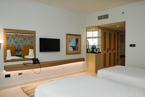 シェラトン・カリディヤ・ホテル一流のサービスとアメニティを提供し、お客様に最高の快適さをお約束します。ご滞在中も無料のインターネット接続をご利用いただけます。当宿泊施設の便利な送迎サービス予約を使って、空港との往復を手配しましょう。当宿泊施設では、アブダビを簡単に移動できるよう、送迎サービスを提供しています。フロントデスクが提供するコンシェルジュサービスを利用して、毎日のアクティビティや旅行の計画を簡単に立てることができます。 当宿泊施設のチケットサービスを利用すれば、一流イベントのチケットを確保したり、人気のレストランを予約したりするのが簡単です。当宿泊施設では、館内のランドリーサービスを利用することで、お気に入りの旅行着を清潔に保つことができるため、持参する衣類を少なくすることができます。 リラックスしたいなら、ルームサービスなどの室内設備・サービスで、お部屋で過ごす時間を最大限にお楽しみいただけます。 喫煙は指定された喫煙ゾーンに限られます。 居心地の良さを追求した各客室は、快適さを保ちながら、静かな眠りをお約束する様々な機能を備えています。一部の客室では、お客様の利便性と満足のために、エアコンやリネンサービスを提供しています。 一部の客室では、室内ビデオストリーミング、日刊新聞、テレビなど、一流の室内エンターテイメントをお楽しみいただけます。 一部の客室では、お客様のご要望に応じたお飲み物をご用意しております。 バスローブ、タオル、ドライヤーは一部のゲストルームにご用意しております。 シェラトン・カリディヤ・ホテルでは毎朝、手作りの美味しい朝食で一日がスタートします。当宿泊施設内にあるカフェで上質なコーヒーを楽しみながら、リフレッシュした気分で一日を始めましょう。当宿泊施設では様々な素晴らしい食事が提供され、魅力的で簡単に利用できるオプションが常に用意されています。シェラトン・カリディヤ・ホテルでは、様々なお食事メニューをご用意しており、あらゆる食事ニーズのお客様に対応いたします。 当宿泊施設のエンターテイメントオプションで、旅の仲間と楽しい夜をお過ごしください。 シェラトン・カリディヤ・ホテルに滞在する旅行者には、当宿泊施設が提供するユニークなサービスのおかげで、食事の準備のために食料品を部屋で受け取るオプションがあります。 シェラトン・カリディヤ・ホテルにある数々のアクティビティをお楽しみください。当宿泊施設すぐ近くのビーチを訪れることをおすすめします。 最終日にはスパ施設を訪れて、休暇を完璧に締めくくりましょう。当宿泊施設のプールで水に浸かり、水浴びをしたり、何往復も泳いだりすることで、日々の活力を取り戻すのに最適です。当宿泊施設に立ち寄り、設備の整ったエクササイズ設備を利用して、休日のカロリーを消費しましょう。