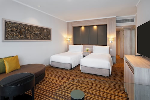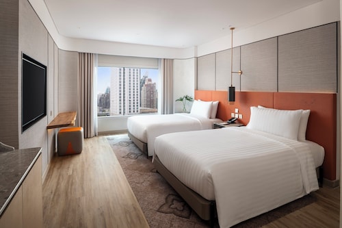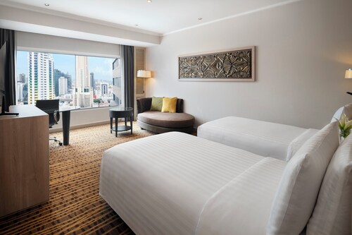 バンコクにあるファミリー向けのこのホテルは、ショッピング地区に位置し、プラチナファッションモールおよびプラトゥーナム市場から歩いてすぐです。セントラルワールドおよびエラワン寺院も 15 分圏内です。 地下鉄 ラチャプラロップ駅まで徒歩 9 分、BTS チット ロム駅まで徒歩 13 分です。 4 か所のレストランのほか、このホテルにはフルサービス スパおよび屋外プールがあります。共用エリアでの WiFi (無料)および セルフパーキング (無料)もご利用いただけます。その他の設備には、2 か所のバー / ラウンジ、フィットネスセンター、およびプールサイドバーがあります。