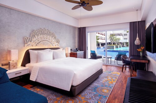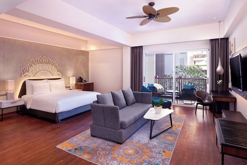 ダブルシックスに位置するこの高級ホテルは、スミニャック ビーチおよびレギャン ビーチから徒歩 15 分圏内です。クタ ビーチおよびスミニャック スクエアも 3 km 圏内です。 このホテルには、2 つの屋外プール、フルサービス スパ、およびレストランがあります。共用エリアでの WiFi (無料)および セルフパーキング (無料)もご利用いただけます。その他の設備には、バー / ラウンジ、子供用プール、および24 時間対応フロントデスクがあります。 タオル交換はリクエストにより行われます。