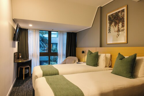 シドニー セントラル ビジネス ディストリクトに位置するこのホテルは、ハイド パークおよびキャピトル シアターから徒歩 10 分圏内です。インターナショナル コンベンション センター シドニーおよびシドニー市庁舎も 15 分圏内です。 地下鉄ミュージアム駅まで徒歩わずか 2 分、地下鉄タウン ホール駅まで徒歩 8 分です。 レストランのほか、この禁煙のホテルにはバー / ラウンジおよびコーヒーショップ / カフェがあります。イングリッシュ ブレックファスト (無料)および共用エリアでの WiFi (無料)もご利用いただけます。その他に、敷地内には24 時間対応フロントデスク、エクスプレス チェックイン、およびエクスプレス チェックアウトがあります。