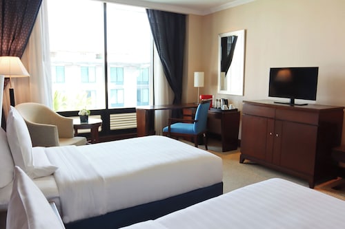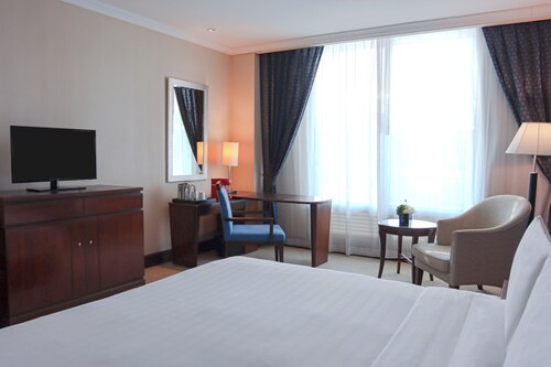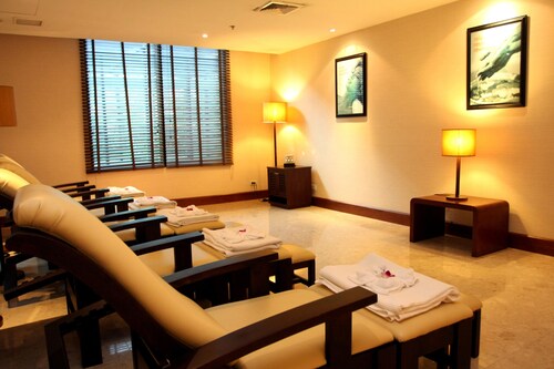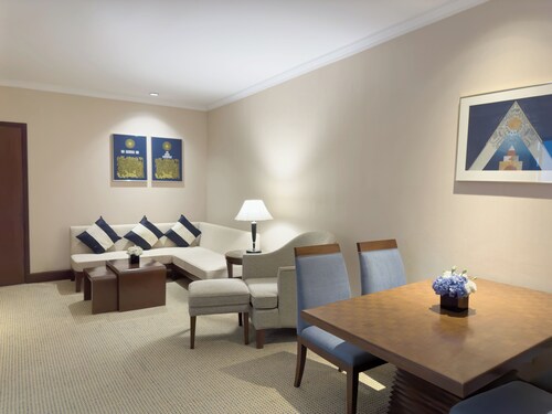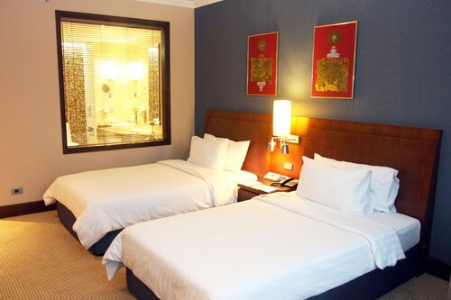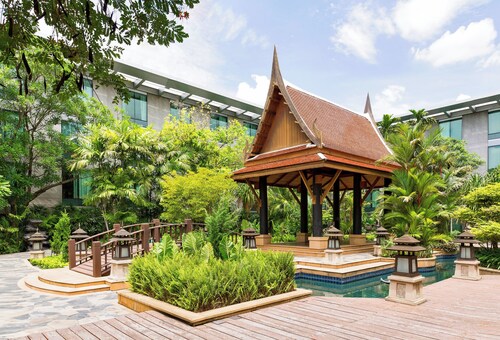 空港の近くに位置する、ファミリー向けのこのホテルは、サミティヴェート シーナカリン病院、サイアム パーク シティ、セントラルビレッジから 25 km 圏内です。メガバンナーおよびラジャマンガラ ナショナル スタジアムも 25 km 圏内です。地下鉄 スワンナプーム空港駅まで徒歩わずか 3 分です。 このホテルには、4 か所のレストラン、フルサービス スパ、および屋外プールがあります。共用エリアでの WiFi (無料)、セルフパーキング (無料)、および空港シャトルサービス (無料)もご利用いただけます。その他の設備には、3 か所のバー / ラウンジ、24 時間営業のフィットネス施設、およびプールサイドバーがあります。 客室清掃はリクエストにより行われます。