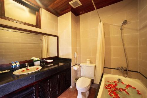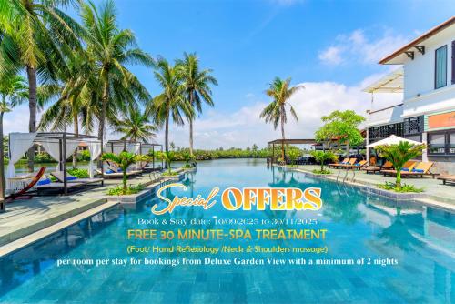 クアダイビーチとデヴォン川の間に位置するHoi An Beach Resortは、屋外プール2つ、無料Wi-Fi、ホイアン旧市街への往復シャトルサービスを提供しています。 Resort Hoi Anの客室は専用バルコニー付きで、庭園、川、または海の景色を見渡せます。全室にテレビ、セーフティボックス、紅茶/コーヒーメーカーが備わっています。 地元のクッキングクラスには、ホイアン市場へのボート遊覧(ガイド付)が含まれます。滞在中はWaterlilyスパでベトナム式のマッサージセラピーを楽しんだり、ビリヤード施設やフィットネスセンターを利用できます。 River Breezeレストランでは、川を一望するバルコニー席や屋内席で食事を楽しめます。SunshineバーやビーチフロントのSandsバーでは、スナックや軽食を用意しています。 Hoi An Beach Resortはダナン国際空港から車で45分、ホイアンの町の中心部から4kmです。追加料金にて空港シャトルを利用できます。
