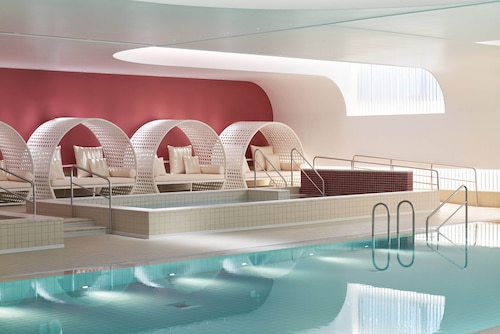 ヨンサン区に位置するこのホテルは、龍山電子商店街から 1.1 km、南大門市場およびNソウルタワーから 5 km 圏内です。国立博物館および戦争記念館も 2 km 圏内です。地下鉄 龍山駅まで徒歩わずか 4 分、地下鉄 新龍山駅まで徒歩 7 分です。 この禁煙のホテルには、屋内プール、レストラン、およびフィットネスセンターがあります。共用エリアでの WiFiは無料です。 その他に、敷地内にはコーヒーショップ / カフェ、セルフパーキング (有料)、およびビジネスセンターがあります。