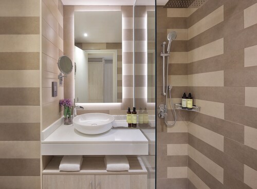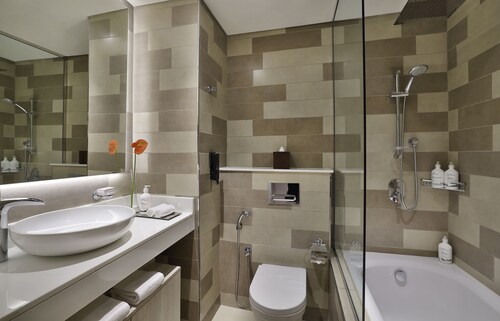 パーム ジュメイラに位置する、ビーチフロントのこのホテルは、市内中心部にあり、パーム・ジュメイラ・モールから 0.3 km、アクアベンチャー (テーマパーク)およびドバイ マリーナ モールから 10 km 圏内です。ザ ウォークおよびマリーナ ビーチも 10 km 圏内です。ナキール・モール駅まで徒歩 7 分、アル・イティハド・パーク駅まで徒歩 10 分です。 NH コレクション ドバイ ザ パームでは砂浜のプライベートビーチで日光浴を楽しみ、フルサービス スパでリラックスした 1 日をお過ごしください。さらにホテルの 2 か所のレストランで食事もお楽しみいただけます。