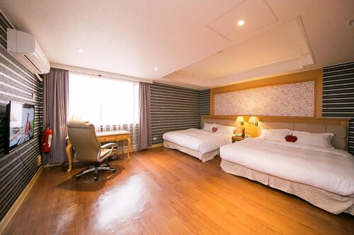新営区に位置するこのホテルは、台南市立新営体育場から 2 km、リューイン リューズ ファミリー オールド ハウスおよび月津港親水公園から 10 km 圏内です。九品蓮花生態教育園区および德元埤荷蘭村も 15 km 圏内です。 禁煙のこのホテルには、2 か所のレストラン、24 時間対応ビジネスセンター、および共用エリアでのコーヒー / ティーサービスがあります。共用エリアでの WiFi (無料)および セルフパーキング (無料)もご利用いただけます。その他に、敷地内にはビジネスセンター、会議スペース、およびドライクリーニングがあります。
