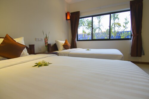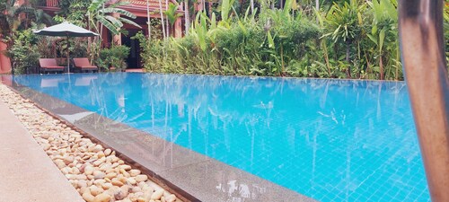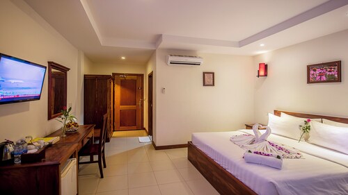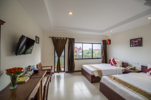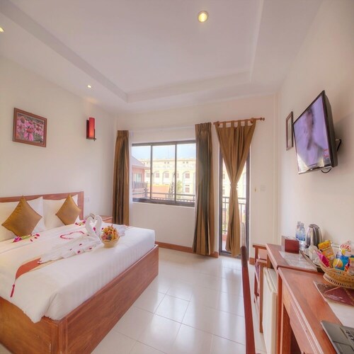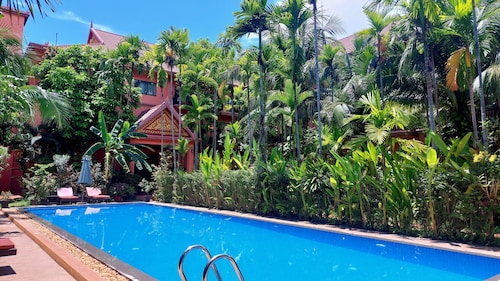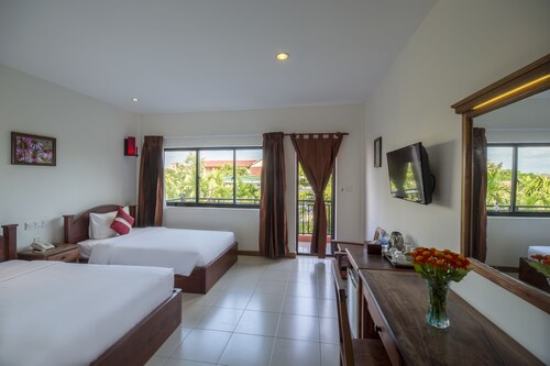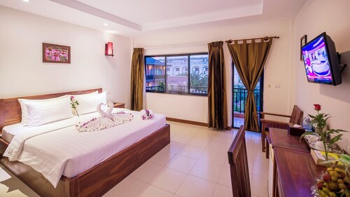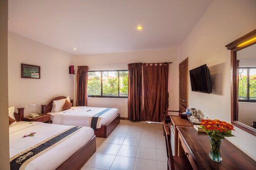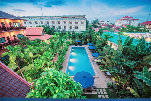 シェムリアップの中心部に位置するこのホテルは、アンコール ナイト マーケットから 2.2 km、シェムリアップ ロイヤル レジデンスから 2.8 km です。水上村は 12.9 km 先にあります。 屋外プール、レストラン、およびバー / ラウンジがある禁煙のホテルです。共用エリアでの WiFi (無料)の他にセルフパーキング (無料)、空港お迎え (無料)、およびマネジャー主催のレセプション (無料)をご利用いただけます。その他の設備には、スナックバー / デリ、共用エリアでのコーヒー / ティーサービス、およびビジネスセンターがあります。