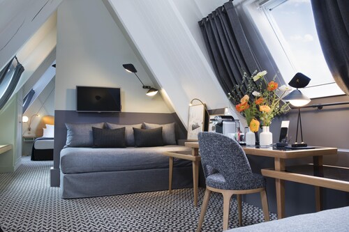 サン ジェルマン デ プレに位置するこのホテルは、サンジェルマン デ プレ教会、ルーブル美術館、リヴォリ通りから徒歩 15 分圏内です。ノートルダム大聖堂およびルクセンブルク ガーデンズも 2 km 圏内です。地下鉄 マビヨン駅と地下鉄 サン ジェルマン デ プレ駅が徒歩 5 分圏内にあります。 このホテルには、バー / ラウンジ、コンシェルジュ サービス、およびドライクリーニングがあります・共用エリアでの WiFiは無料です。 その他に、敷地内にはランドリー設備、24 時間対応フロントデスク、およびコンピューター ステーションがあります。